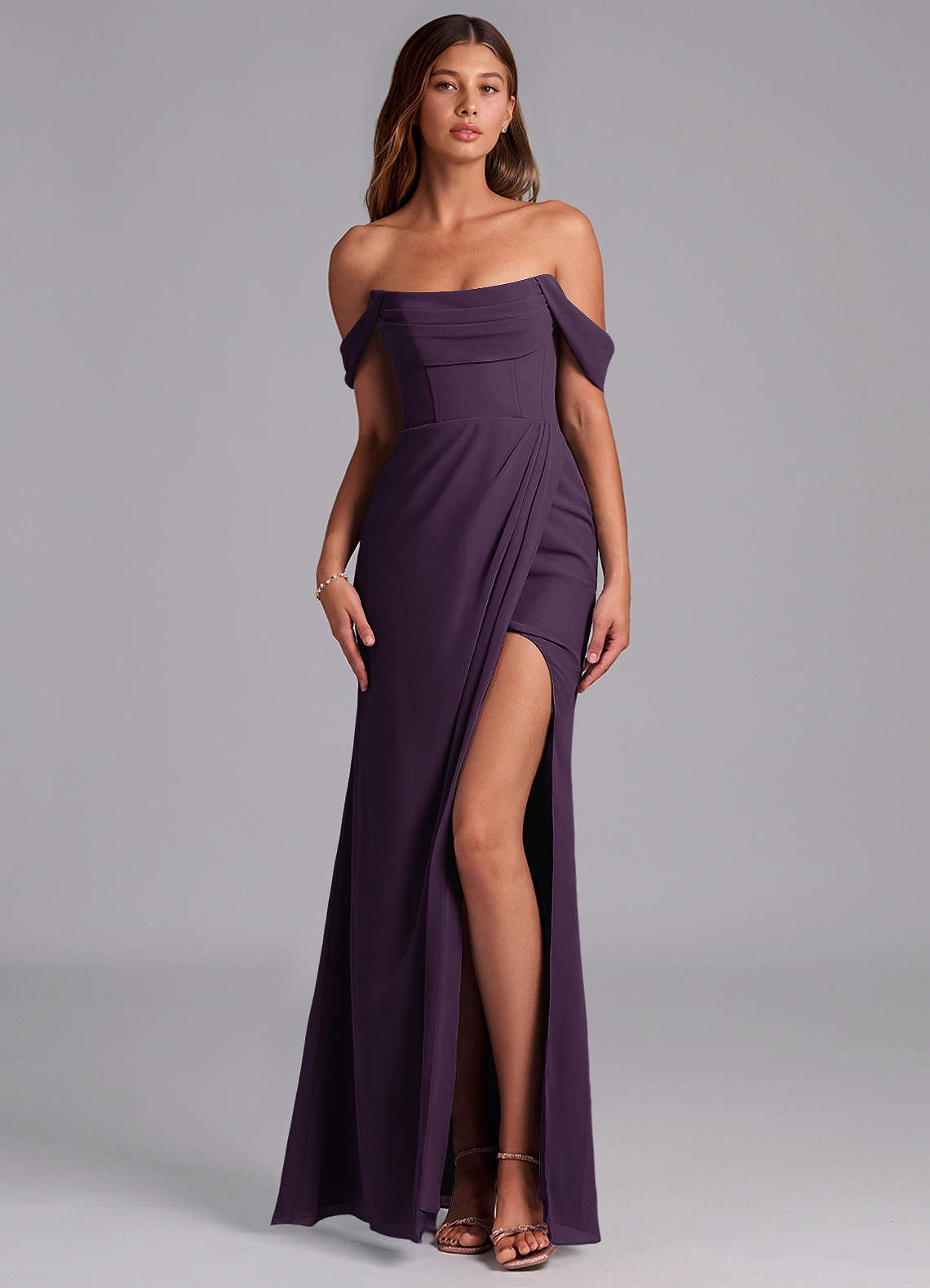 Abito Convertibile Sirena in Chiffon a Spalla Scoperta Prugna