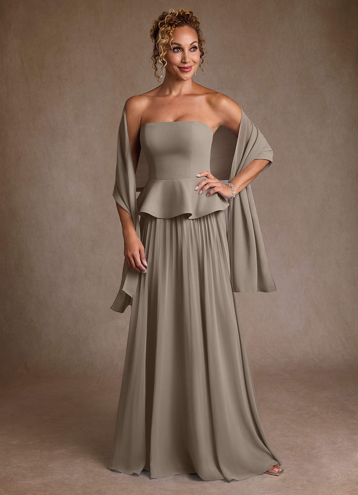 Abito A-Line in Chiffon Plissettato Taupe