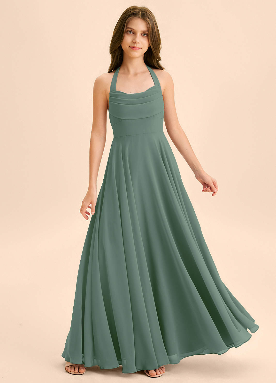 Abito A-Line in Chiffon Scollo a Cuore Eucalipto