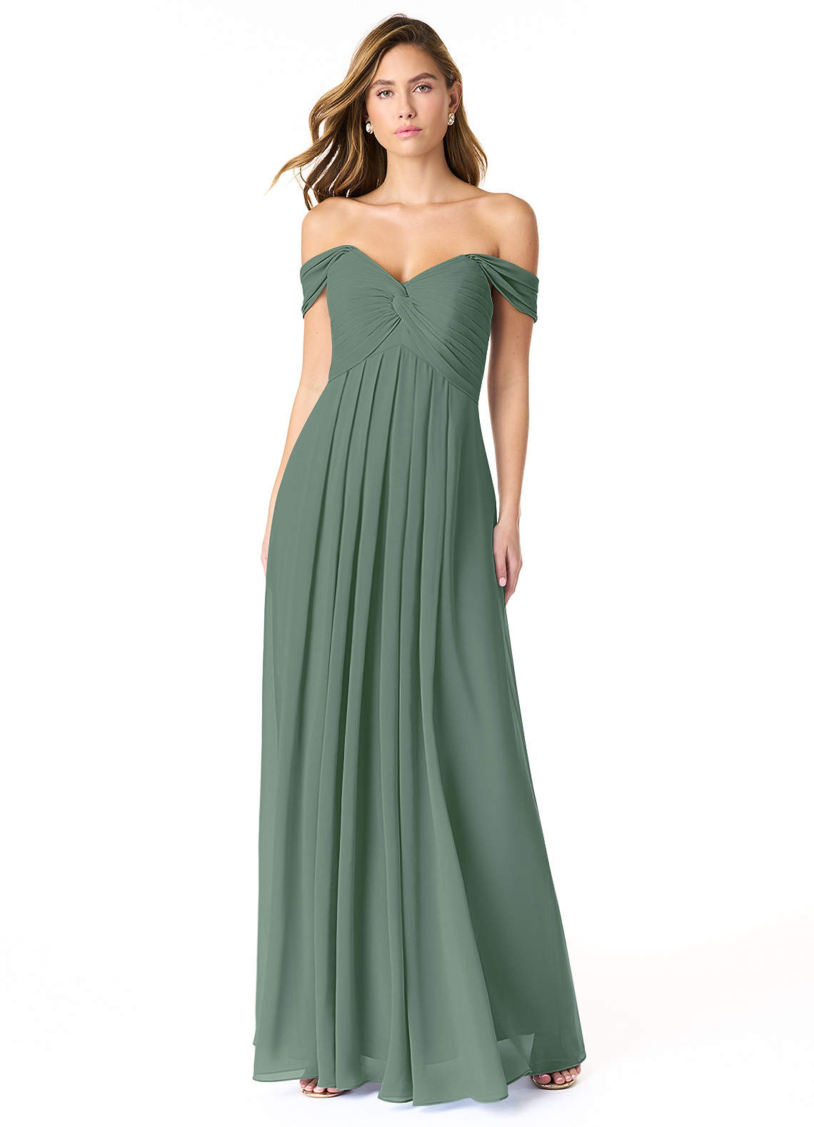 Abito Convertibile Impero in Chiffon Increspato Eucalipto