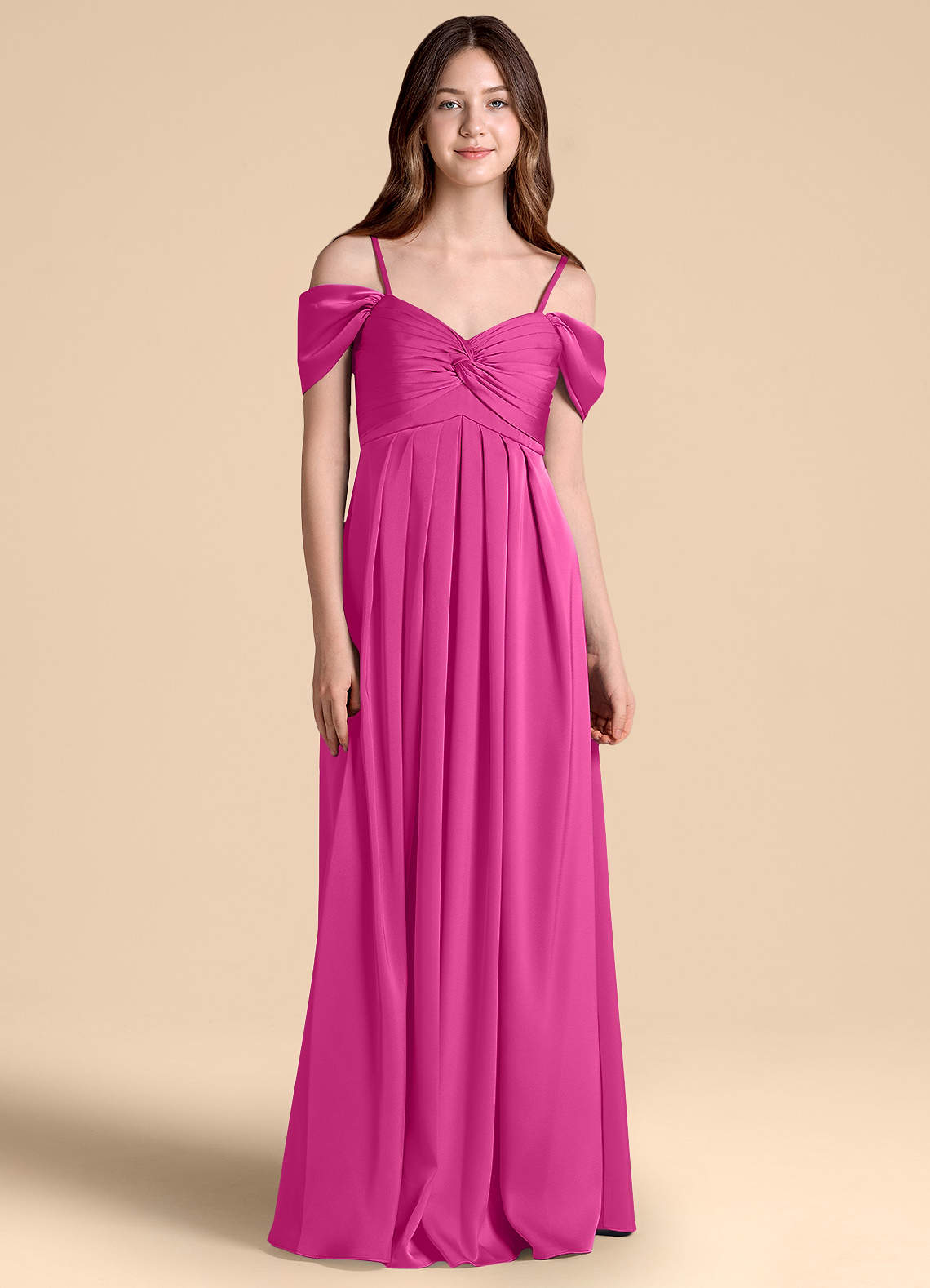 Abito A-Line in Raso Elasticizzato a Spalla Scoperta Fucsia