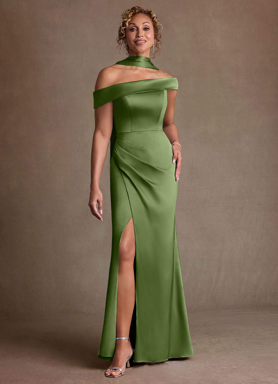 Abito Tubino in Raso Elasticizzato Monospalla Ginepro