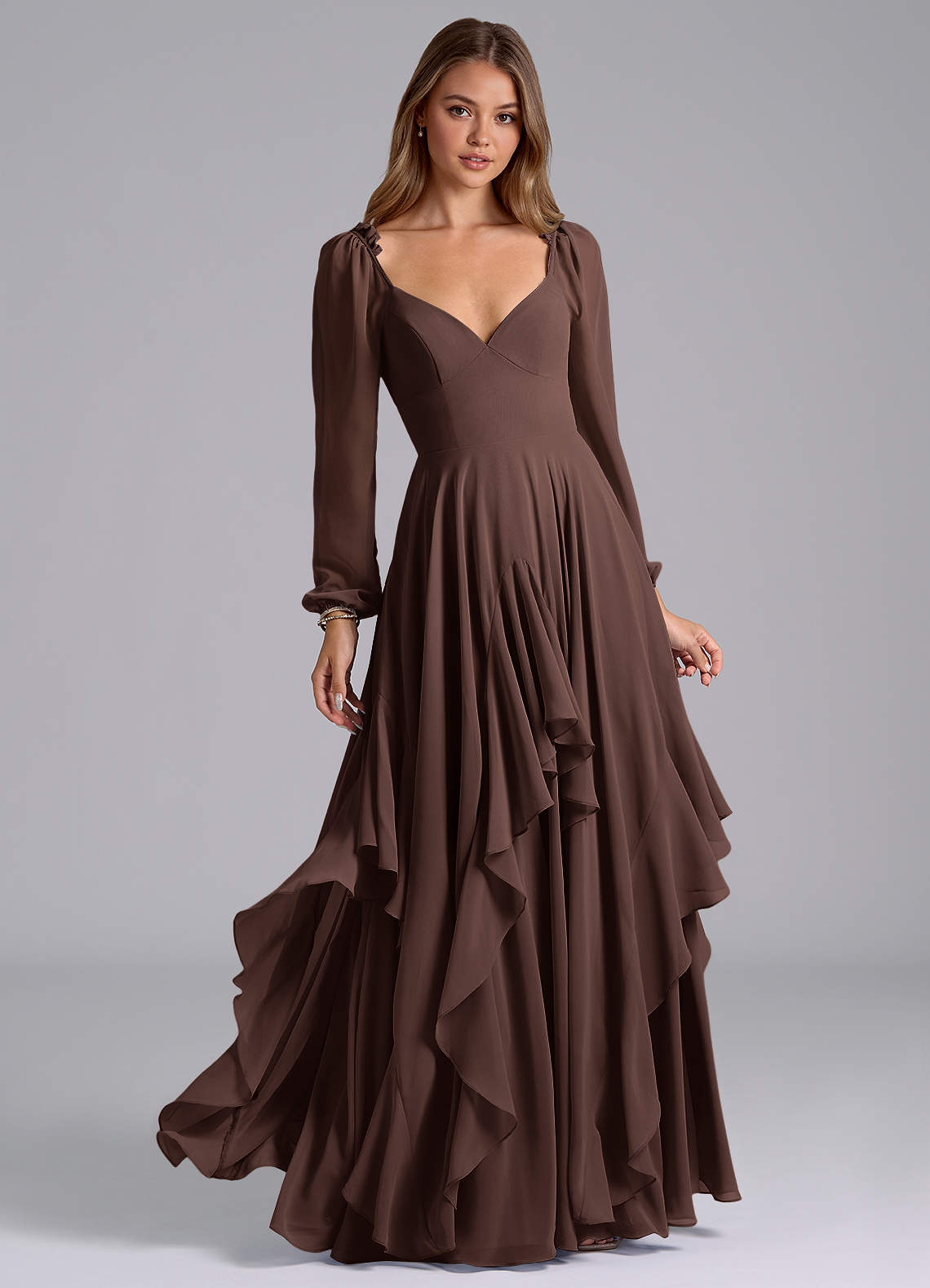 Abito A-Line in Chiffon Manica Lunga Ganache
