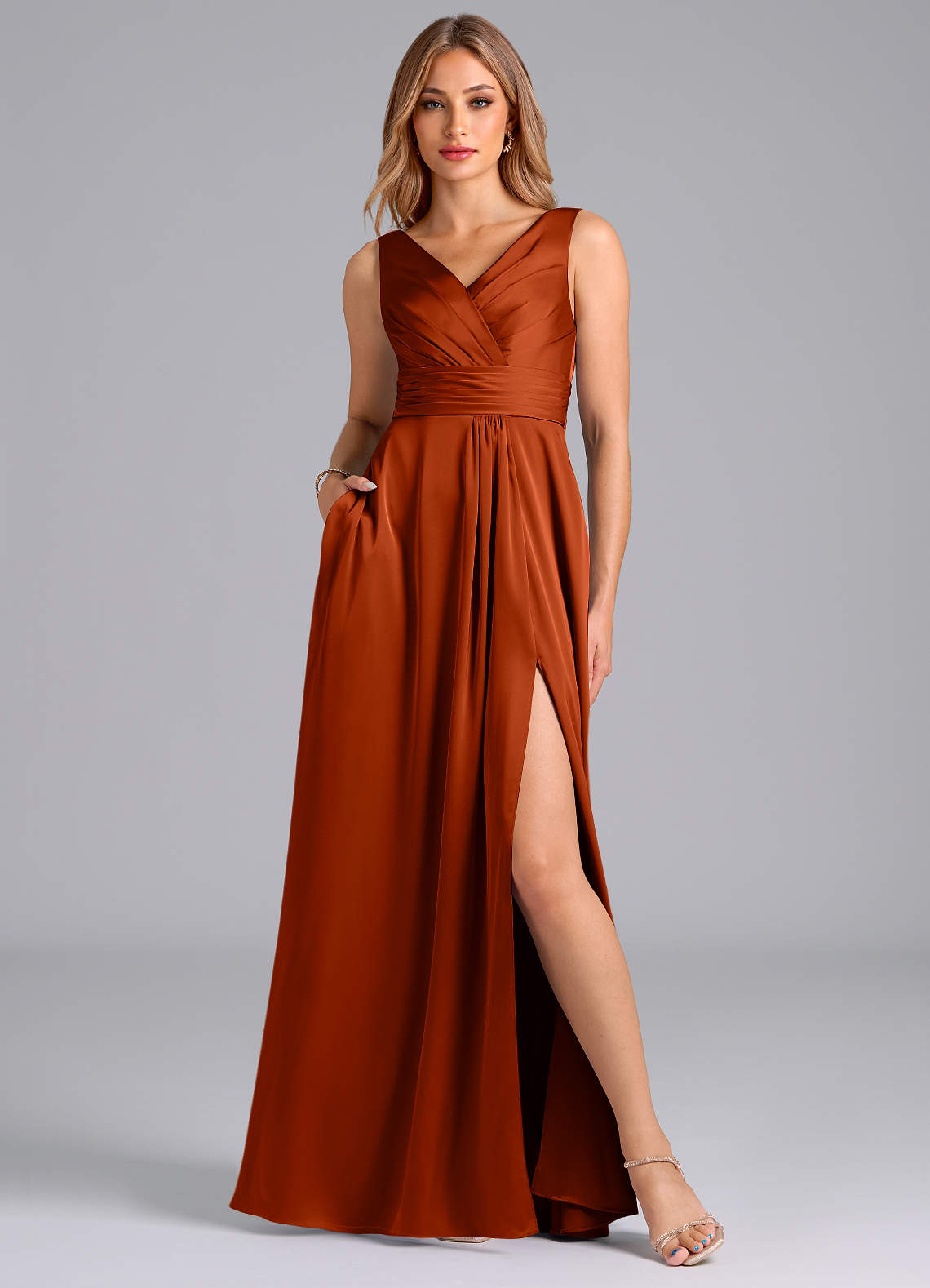 Abito A-Line in Raso Elasticizzato Plissettato Paprika