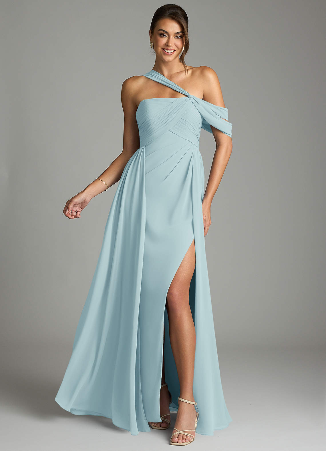 Abito A-Line in Chiffon a Spalla Scoperta Sea Glass