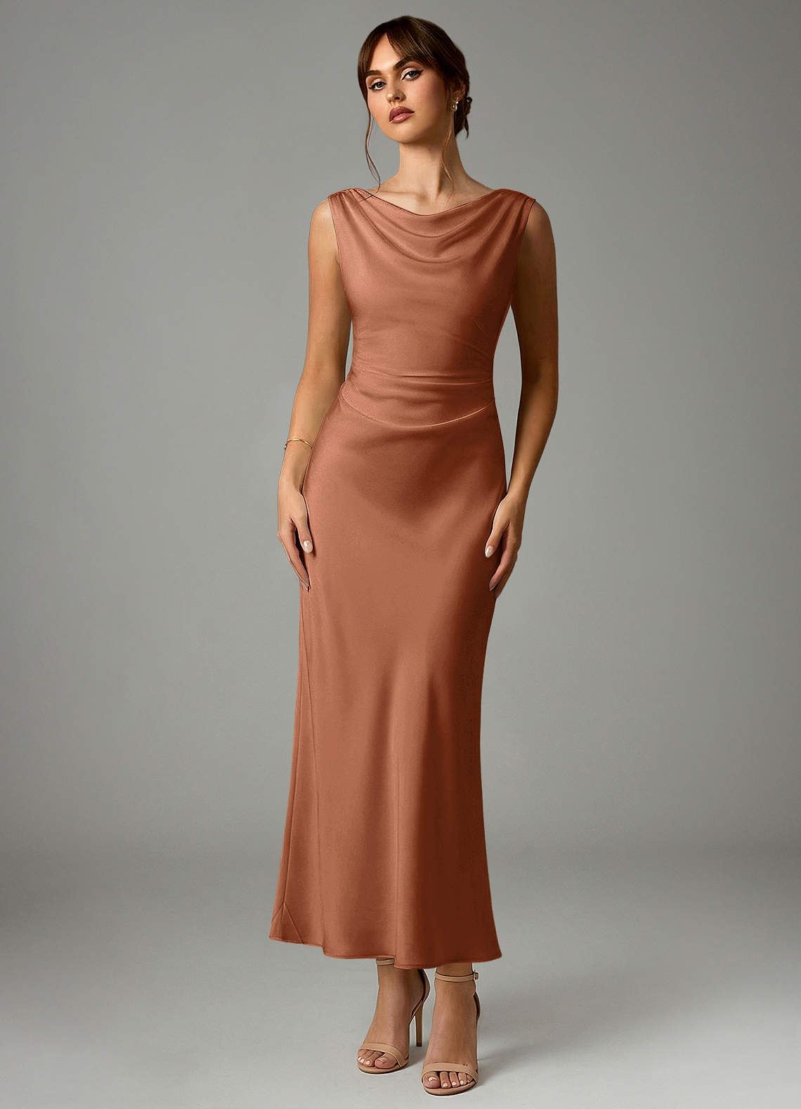 Abito Sirena in Raso Elasticizzato Plissettato Bronzo