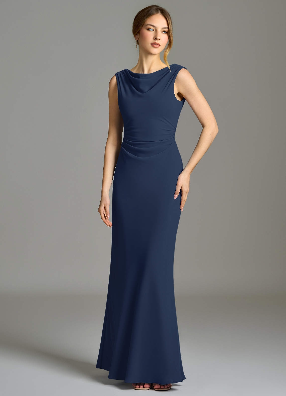 Abito Sirena in Chiffon Plissettato Marino Scuro