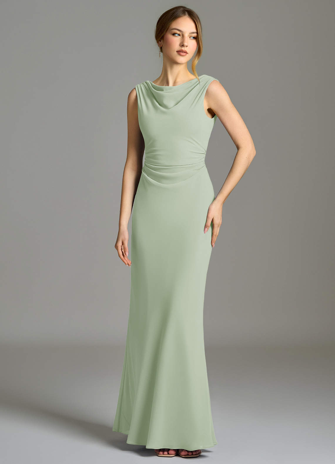 Abito Sirena in Chiffon Plissettato Verde Salvia