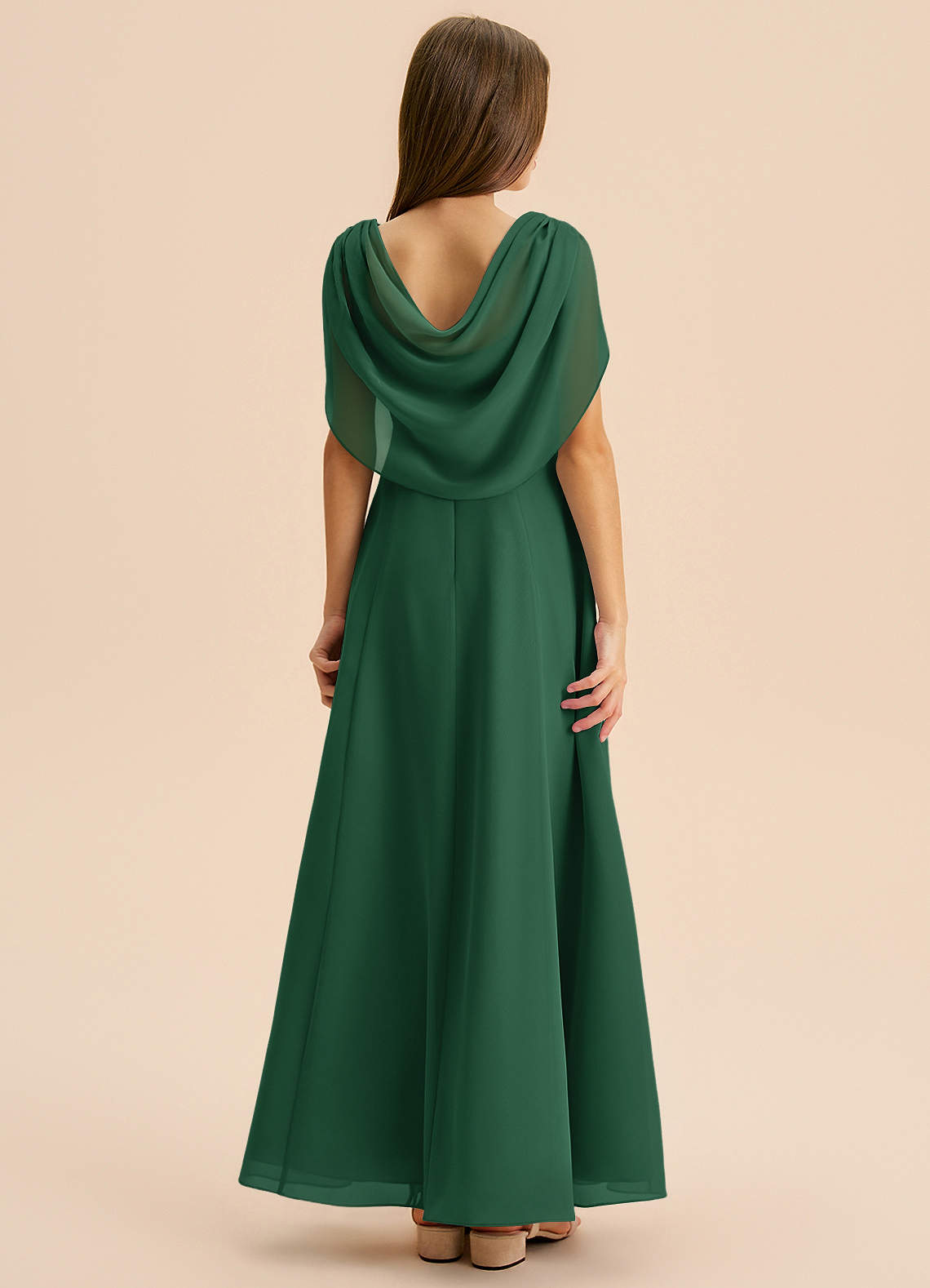 Abito A-Line in Chiffon Plissettato Verde Scuro