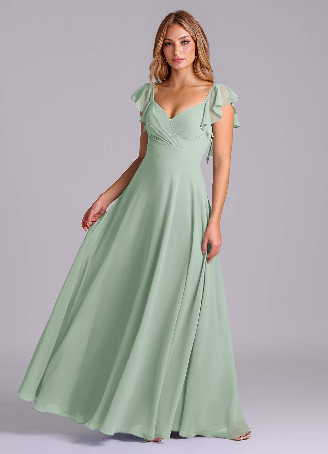 Abito A-Line in Chiffon Plissettato Agave