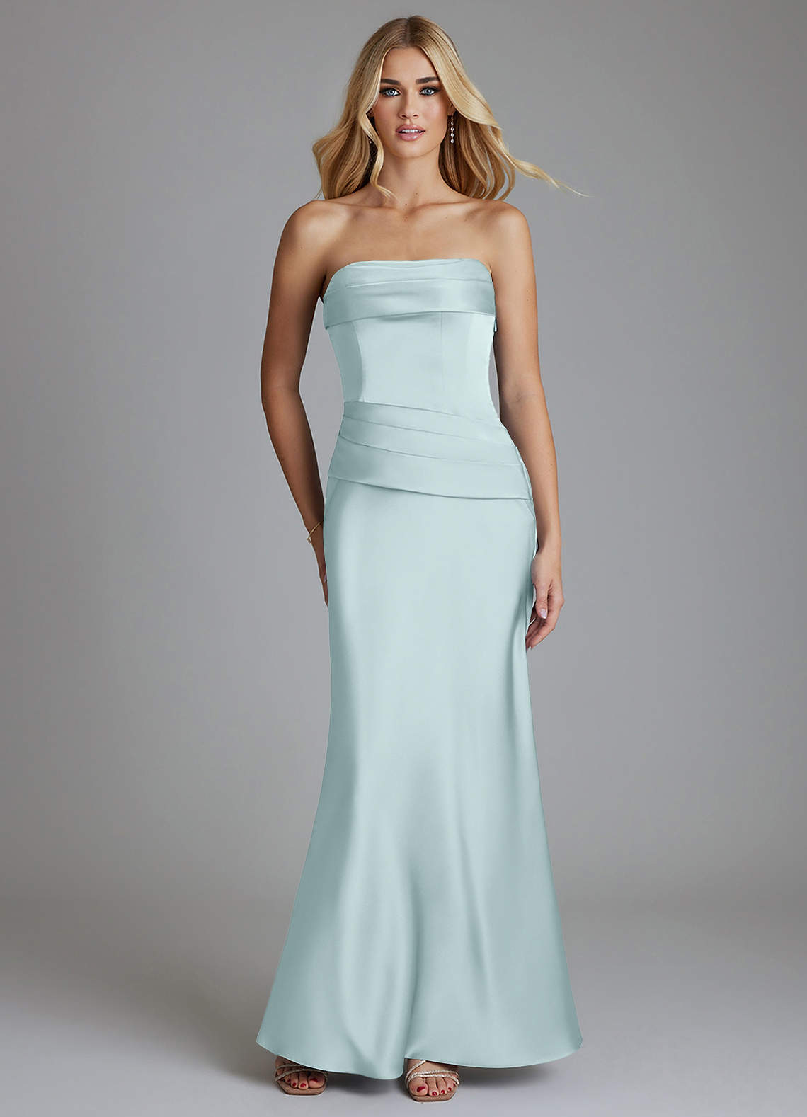 Abito Tubino in Raso Elasticizzato Plissettato Nebbia