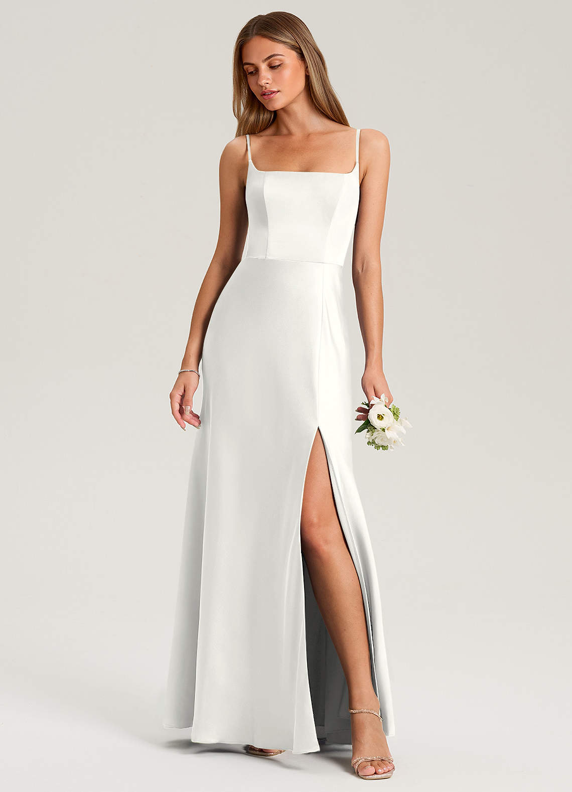 Abito Sirena in Raso Elasticizzato Spacco Laterale Bianco