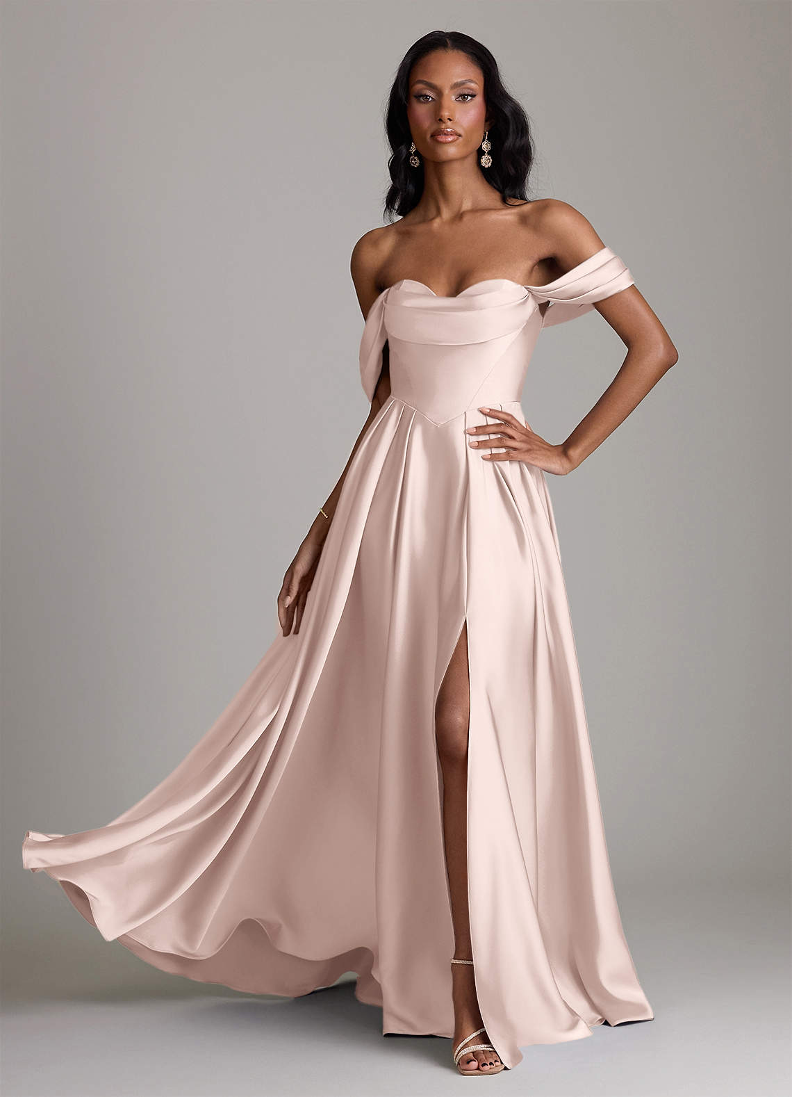 Abito A-Line in Raso Elasticizzato a Spalla Scoperta Rosa Rossore