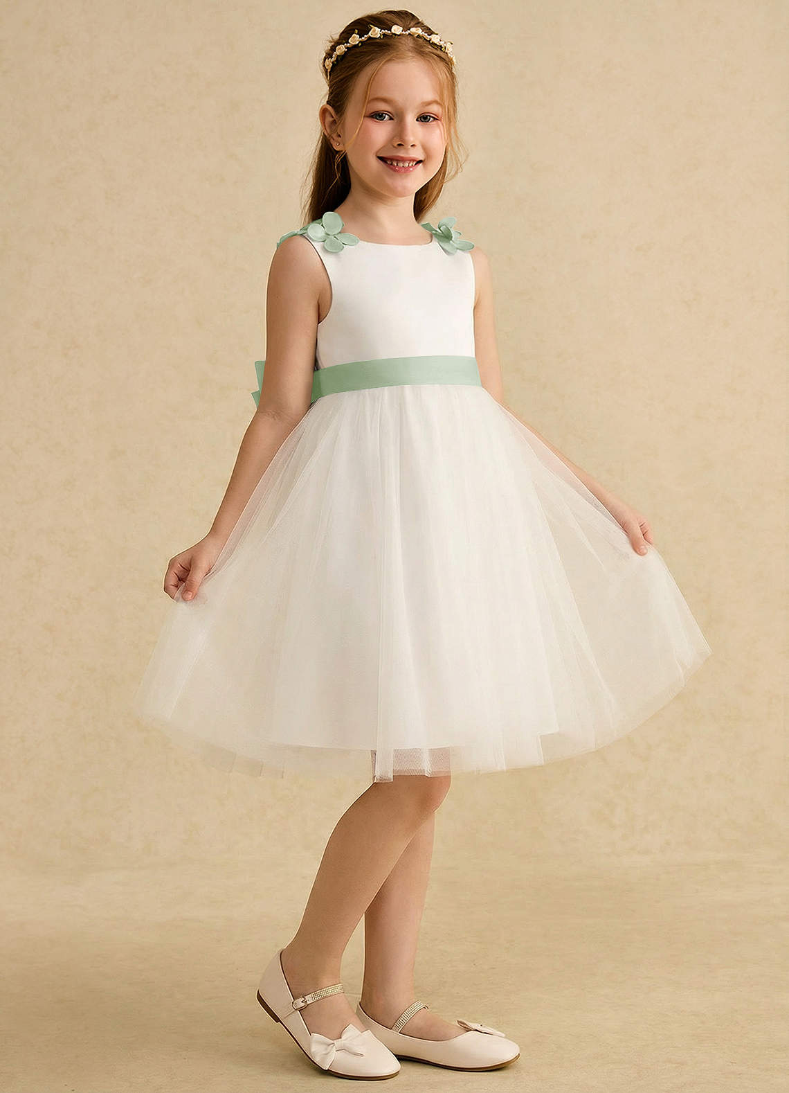 Abito A-Line in Raso Opaco Fiocco Avorio Salvia Polverosa