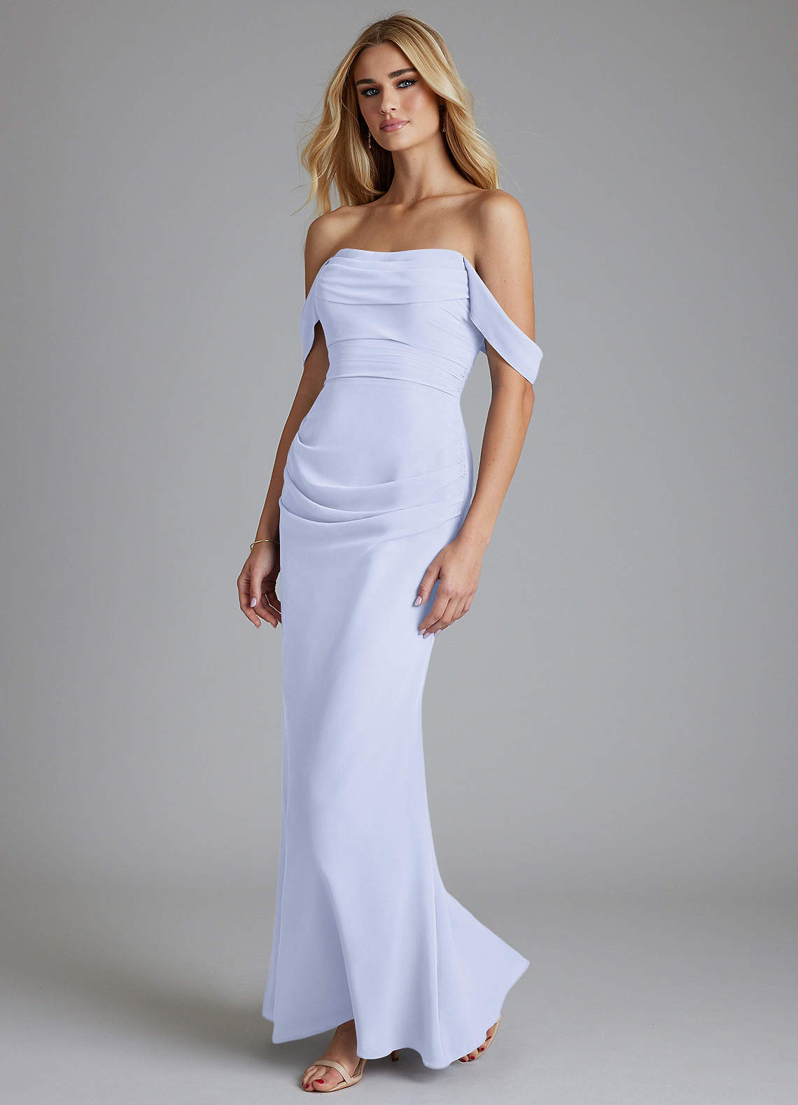 Abito Sirena in Chiffon a Spalla Scoperta Lavanda