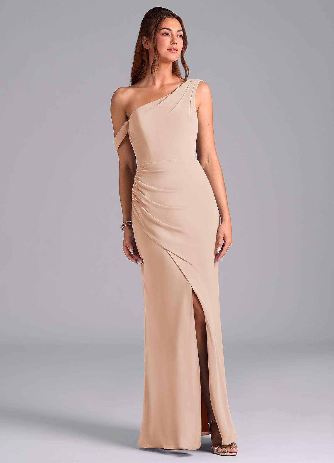 Abito Convertibile Sirena in Chiffon Monospalla Rosa Inglese