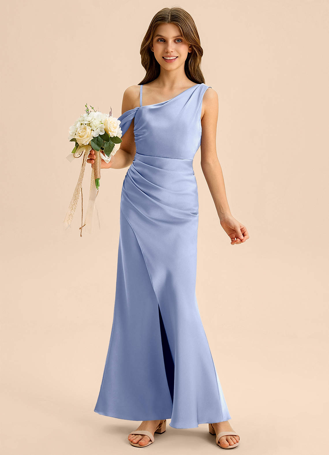 Abito Tubino in Raso Elasticizzato a Spalla Scoperta Ghiaccio