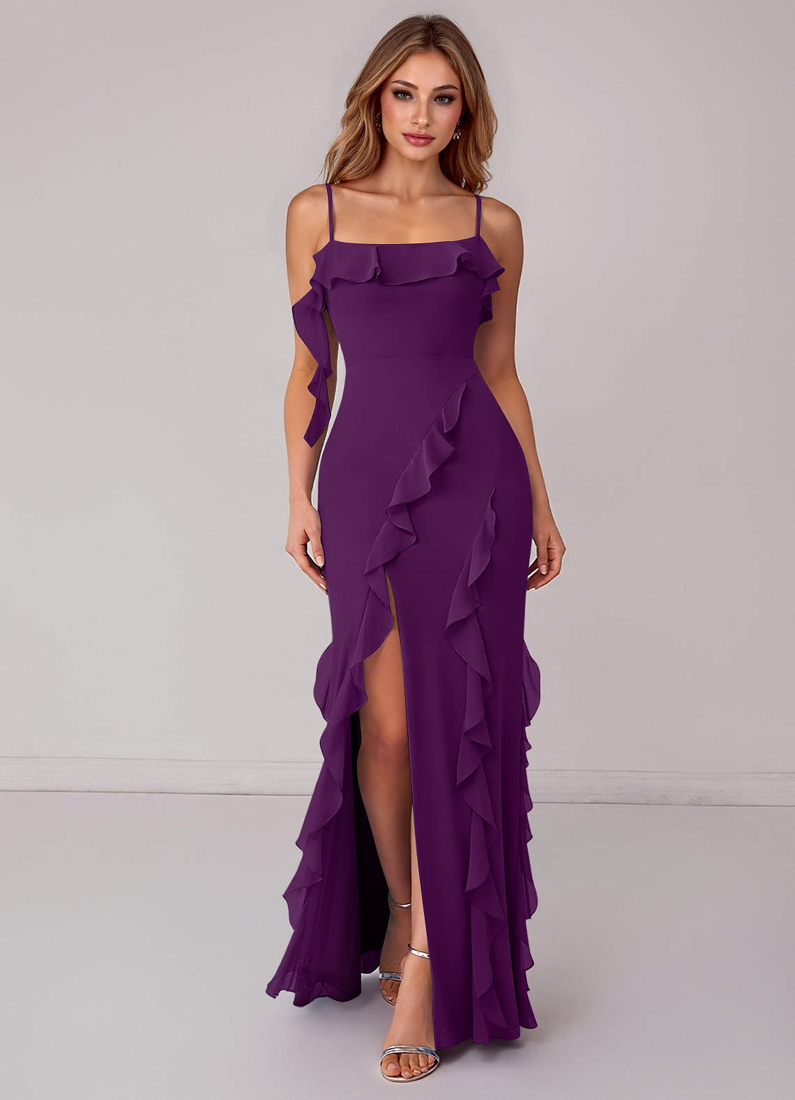 Abito Tubino in Chiffon Increspato Uva
