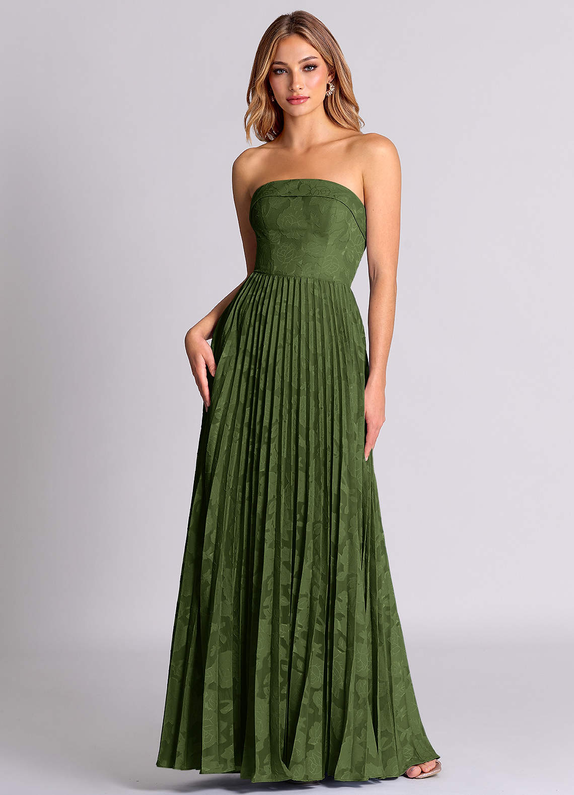 Abito Convertibile A-Line in Burnout Floreale Senza Cinturino Oliva