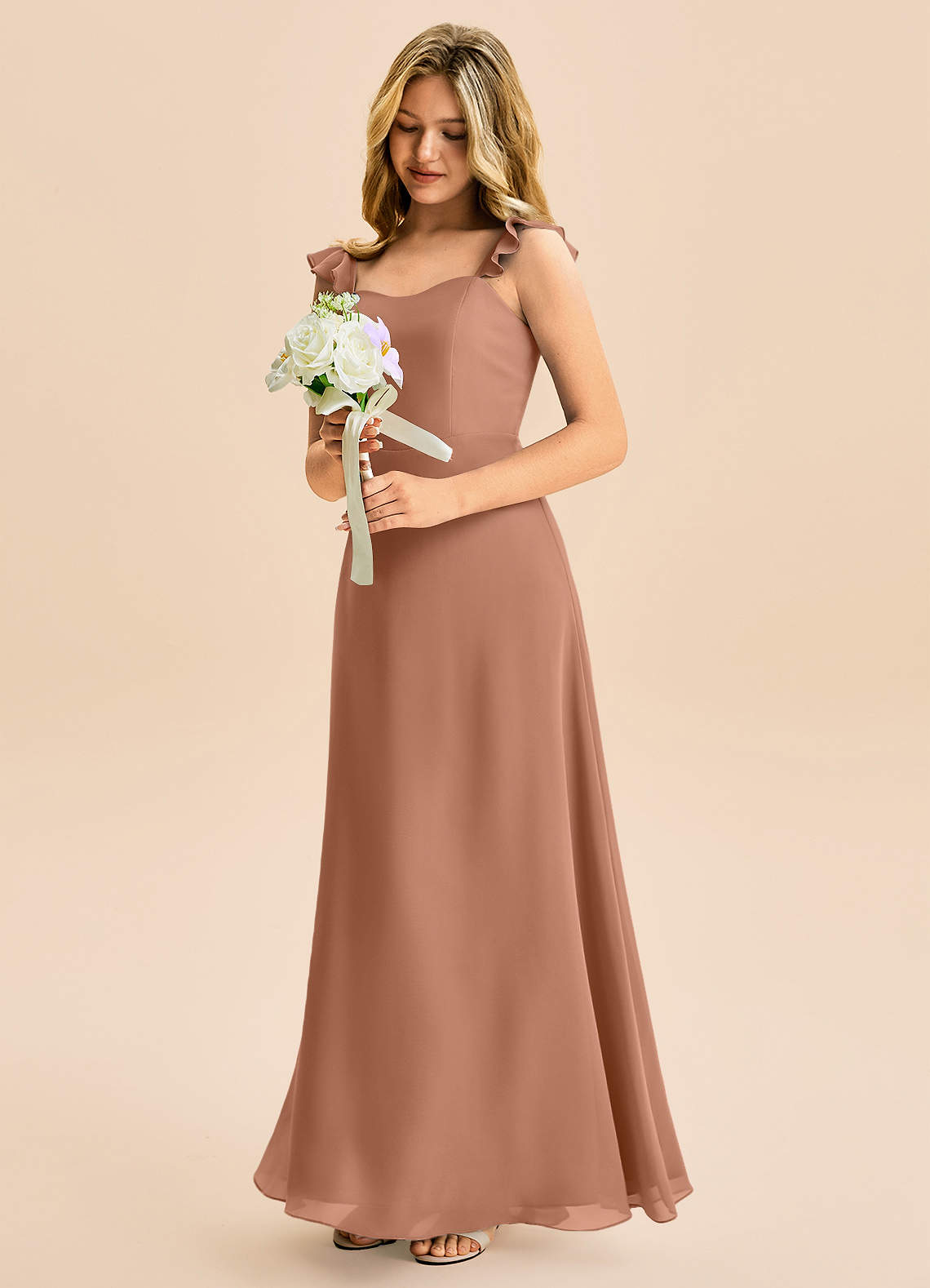 Abito A-Line in Chiffon Increspato Bronzo