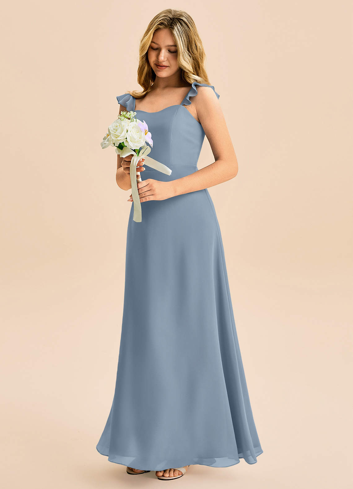 Abito A-Line in Chiffon Increspato Blu Polveroso