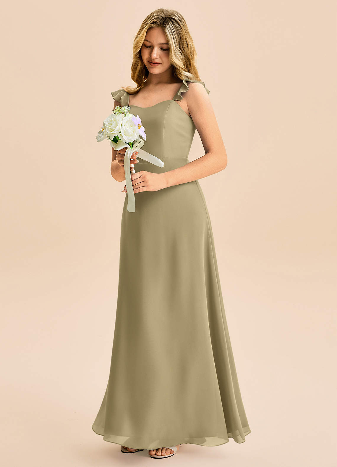 Abito A-Line in Chiffon Increspato Verde Muschio