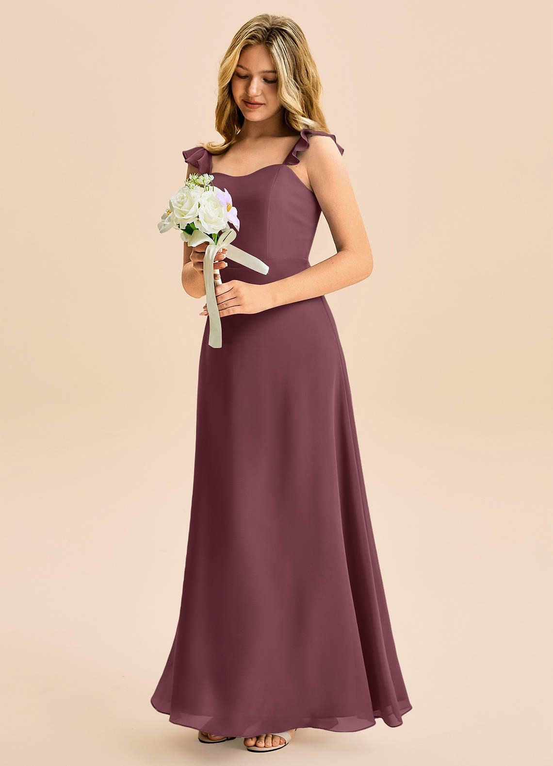 Abito A-Line in Chiffon Increspato Sangria