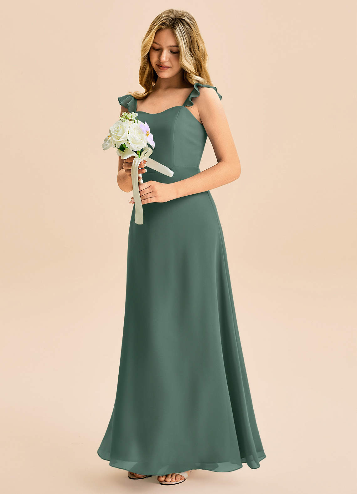 Abito A-Line in Chiffon Increspato Muschio Marino