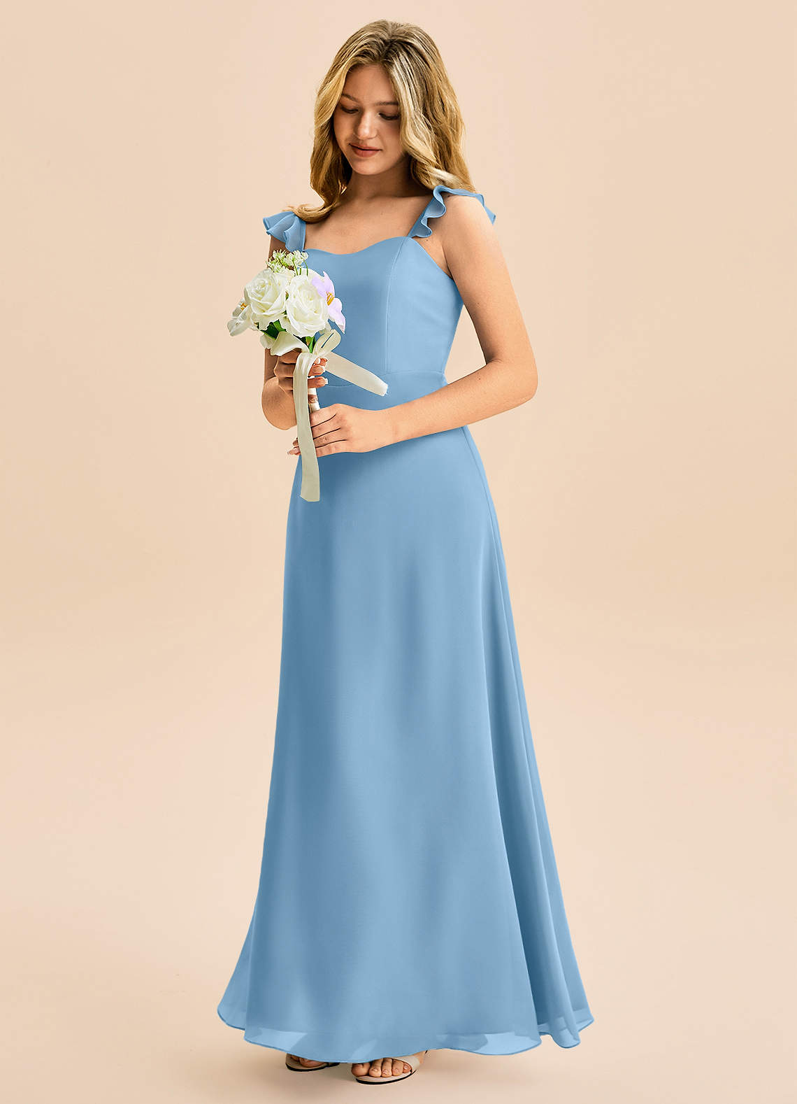 Abito A-Line in Chiffon Increspato Blu Acciaio