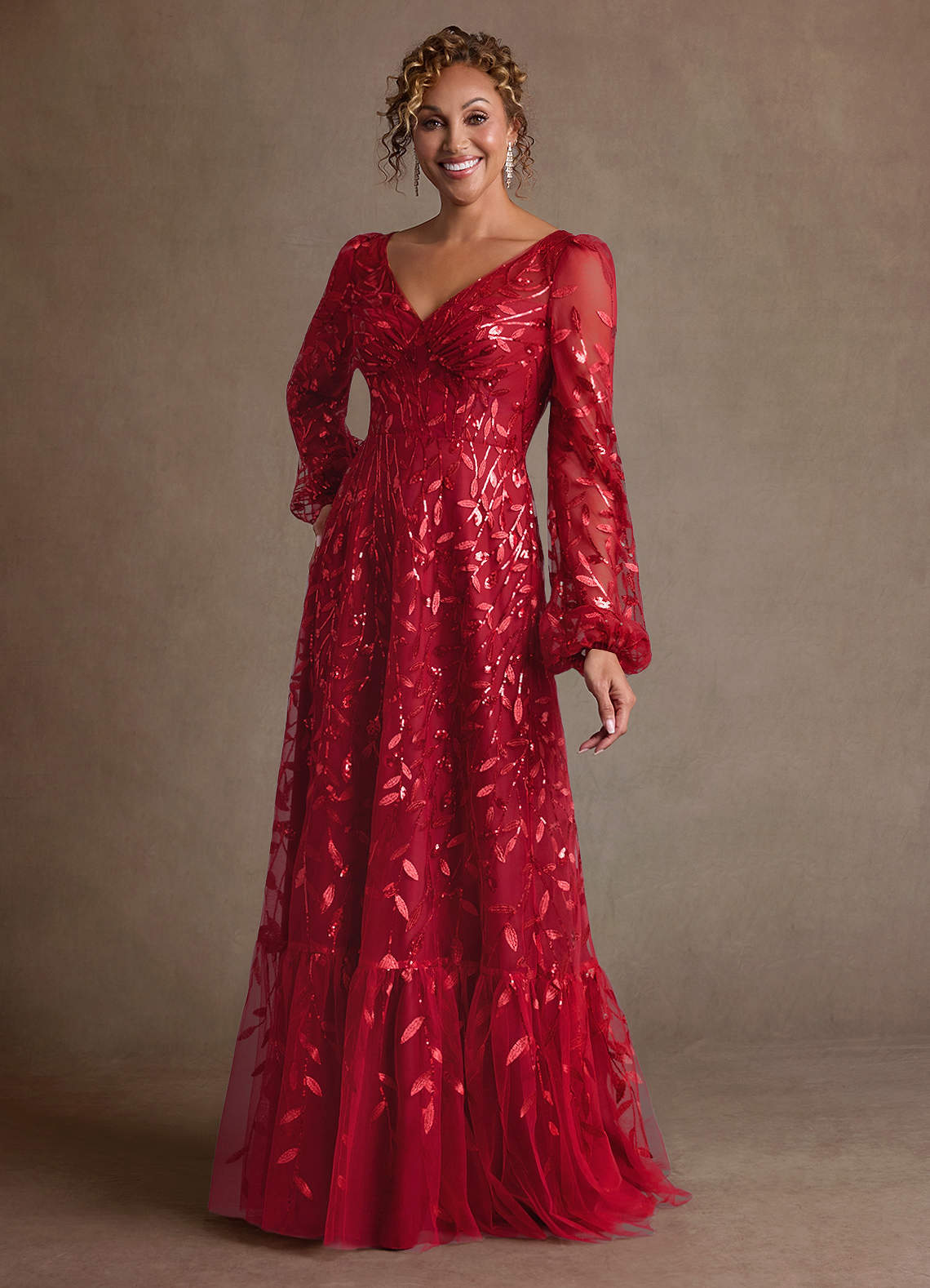 Abito A-Line in Tulle Pizzo Borgogna
