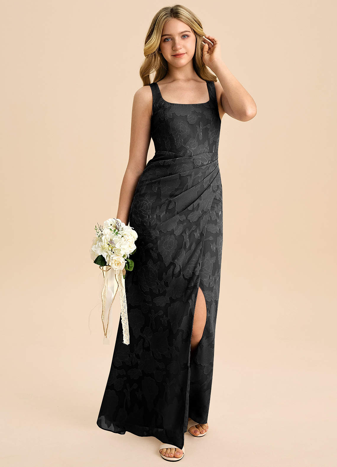 Abito Tubino in Burnout Floreale Plissettato Nero