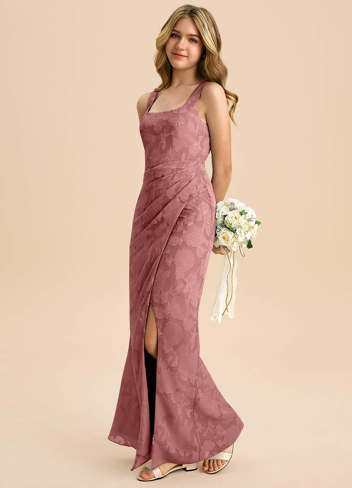 Abito Tubino in Burnout Floreale Plissettato Rosa Polverosa