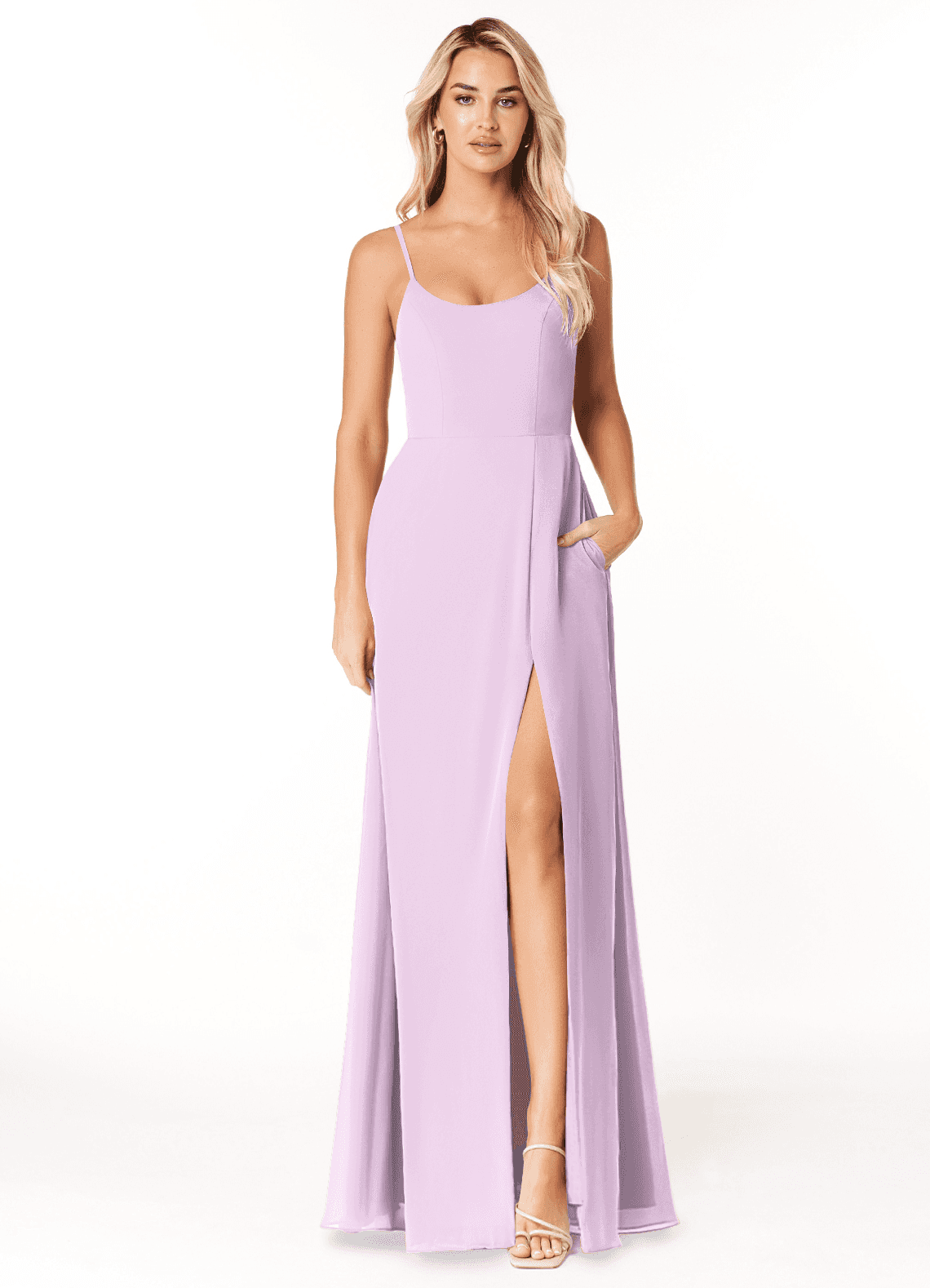 Abito A-Line in Chiffon con Scollo a U Lilla Glassato