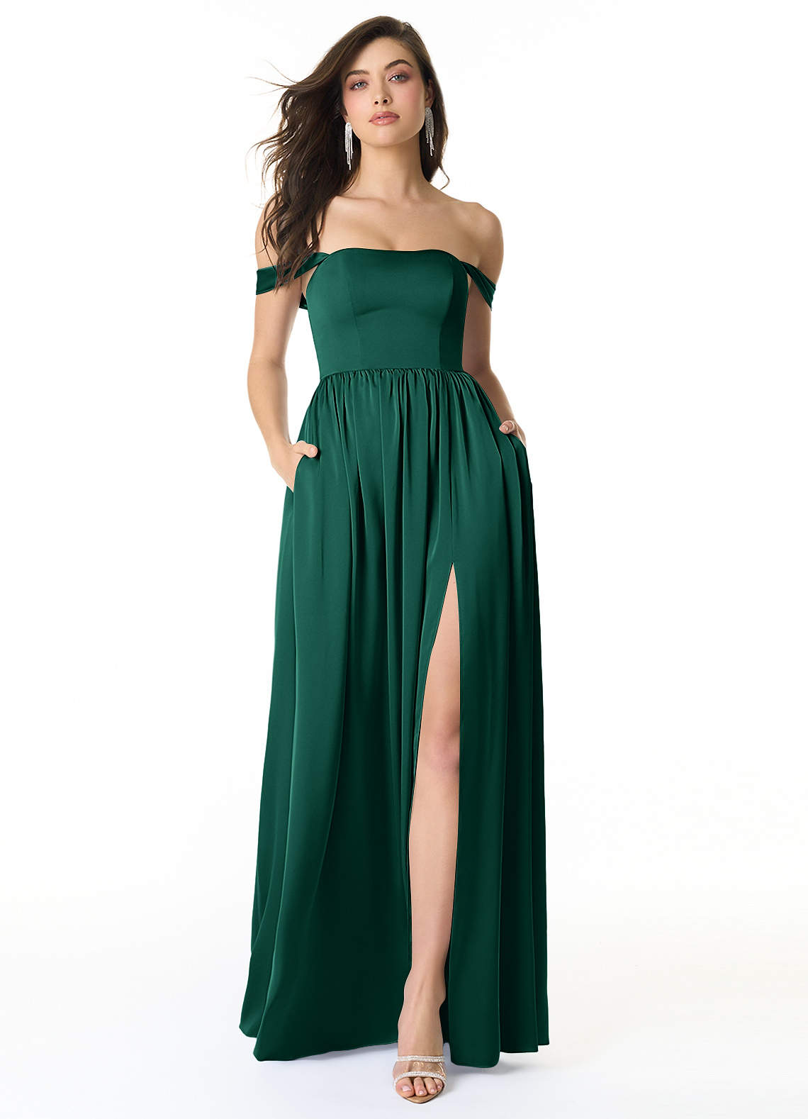 Azazie Morana Abiti da Damigella Abito Convertibile A-Line in Raso Elasticizzato a Spalla Scoperta Smeraldo image1