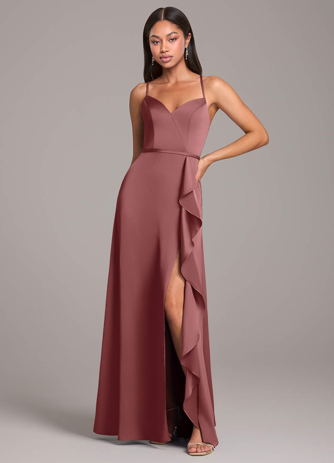 Abito A-Line in Raso Elasticizzato Scollo a Cuore Ametista