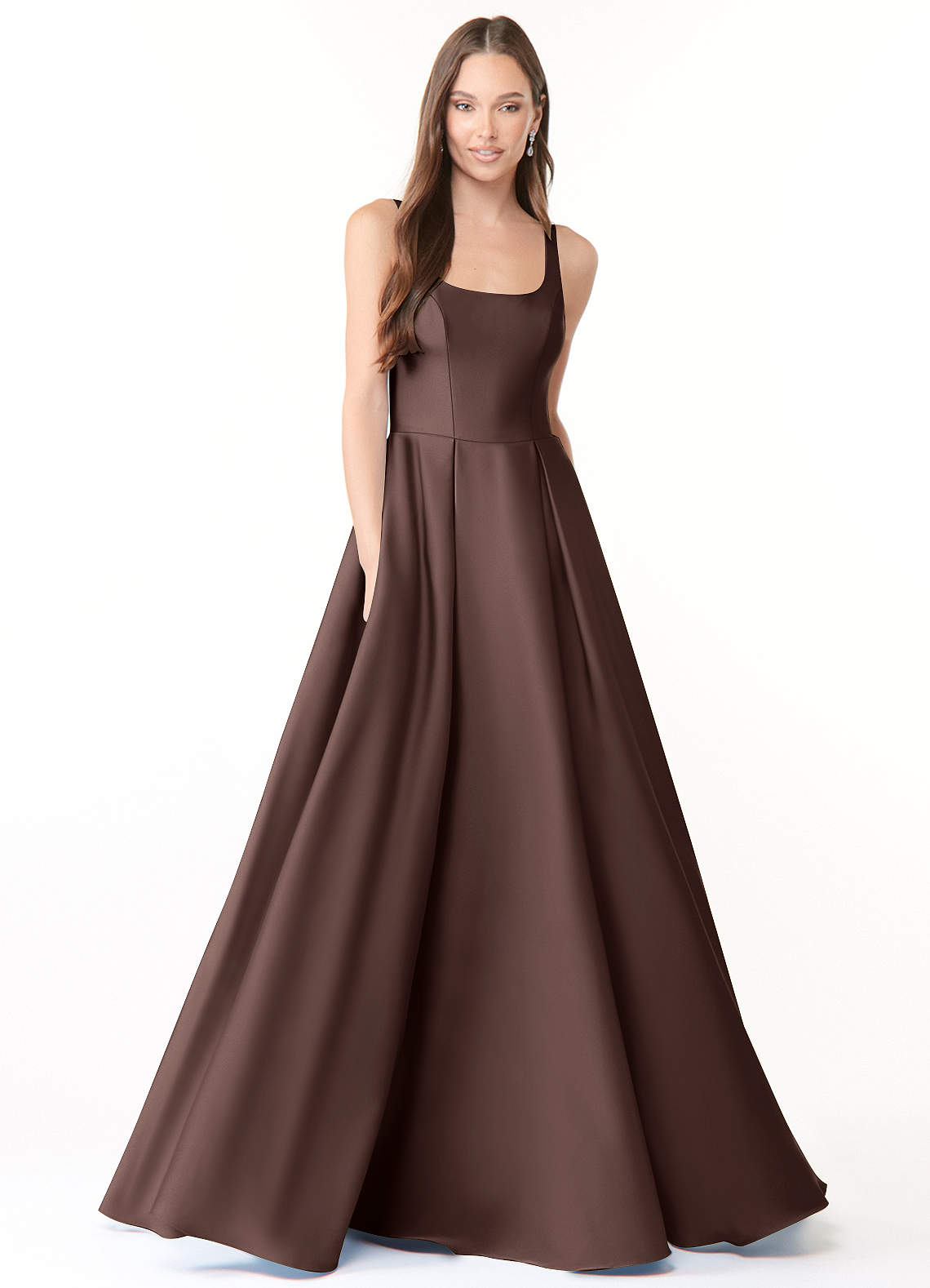 Abito Principessa in Raso Elasticizzato Con Tasche Ganache