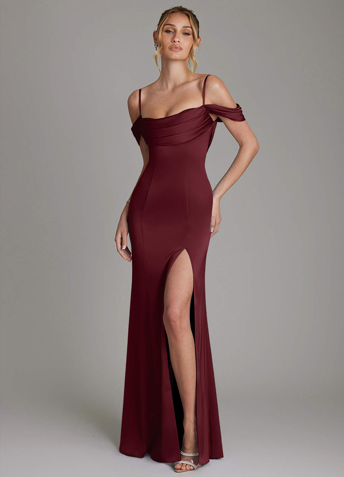 Abito Sirena in Raso Elasticizzato Corsetto Cabernet