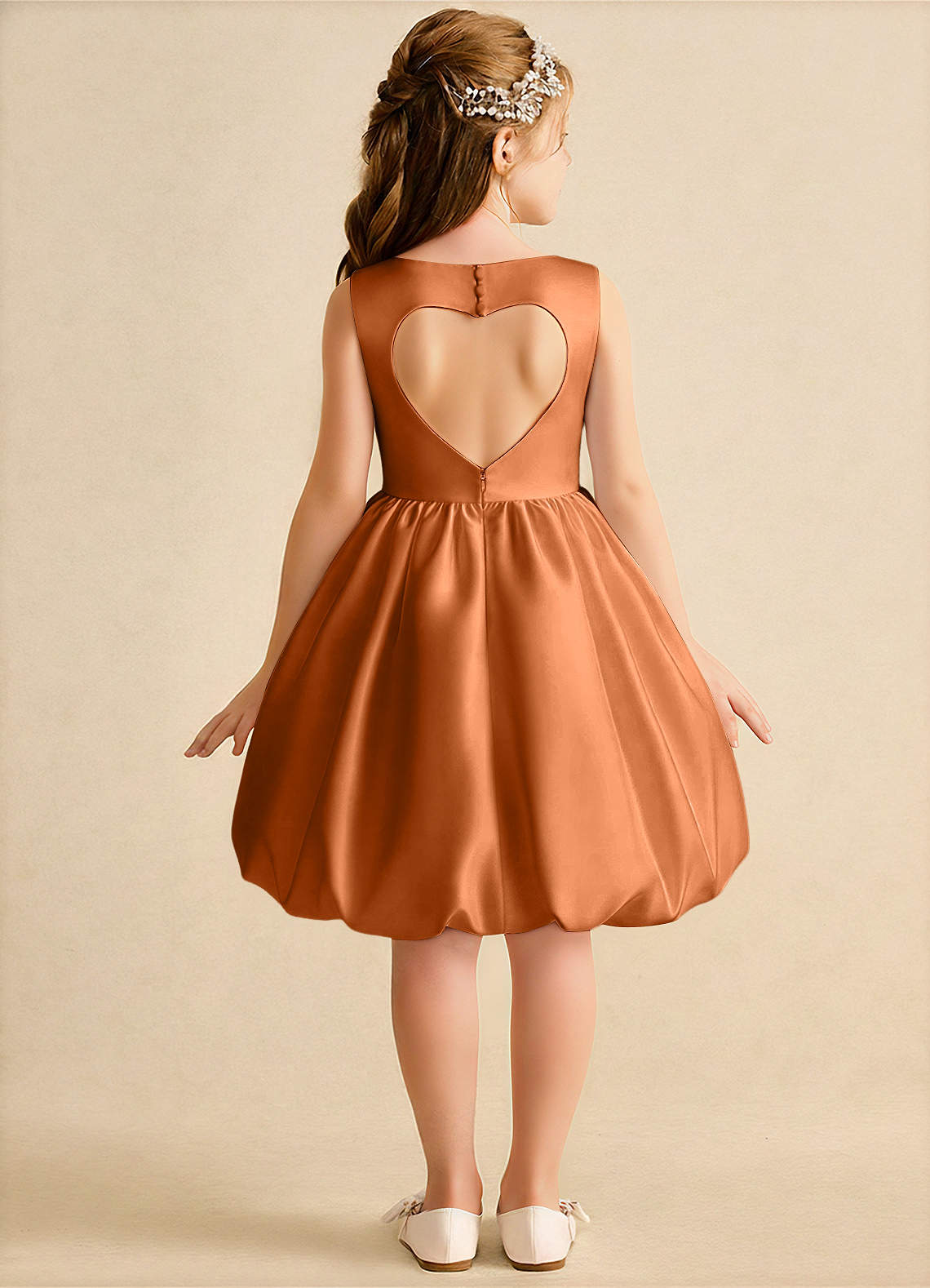 Abito Principessa in Raso Opaco Increspato Rame