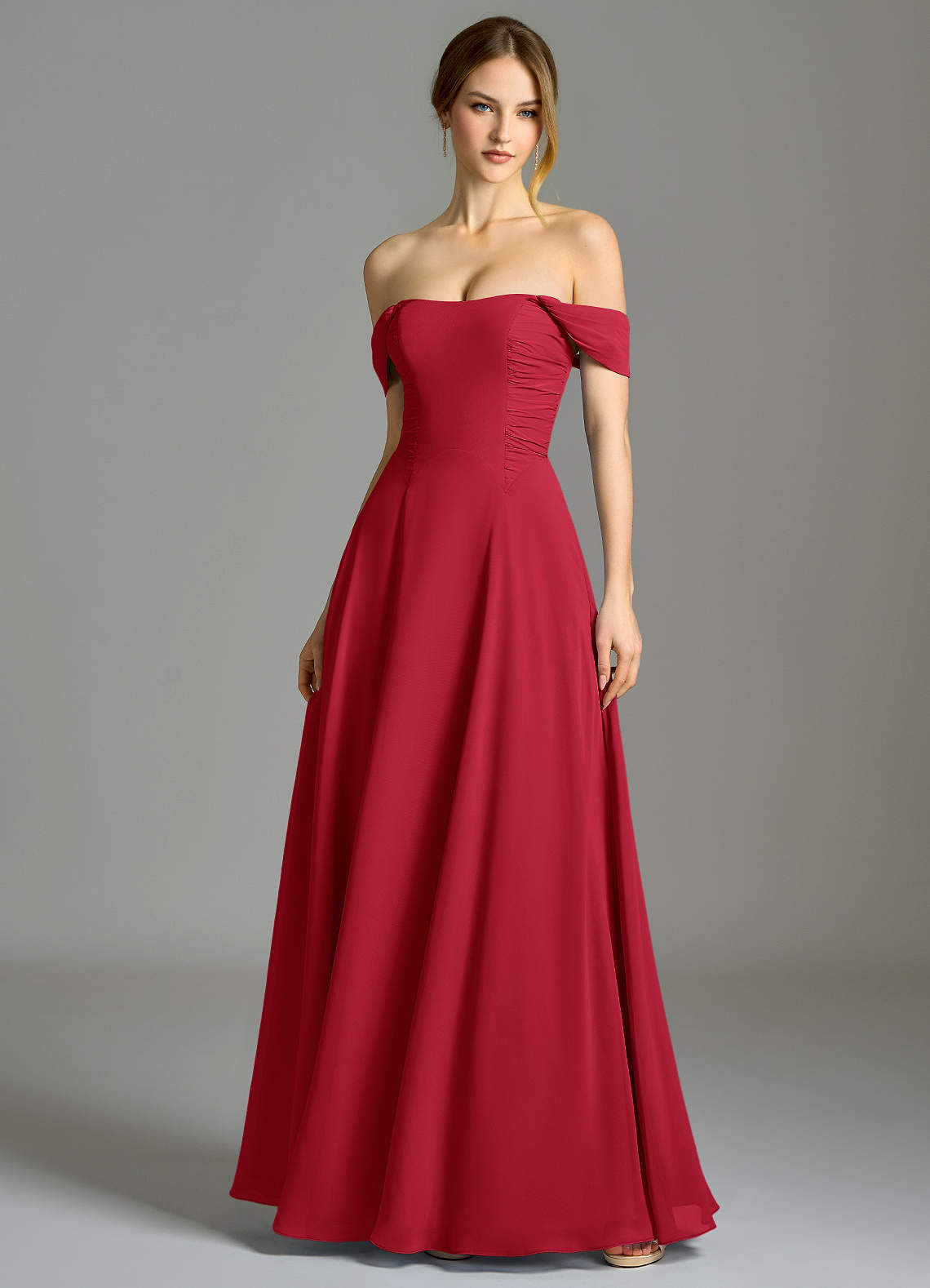 Abito A-Line in Chiffon Con Tasche Scarlatto