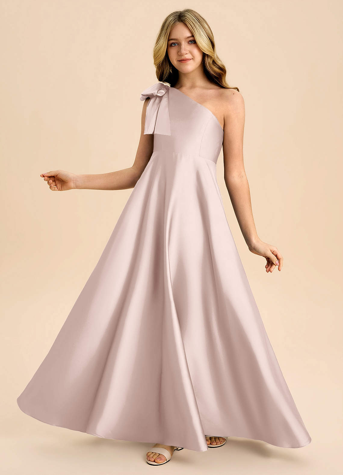 Abito A-Line in Raso Elasticizzato Fiocco Rosa Rossore