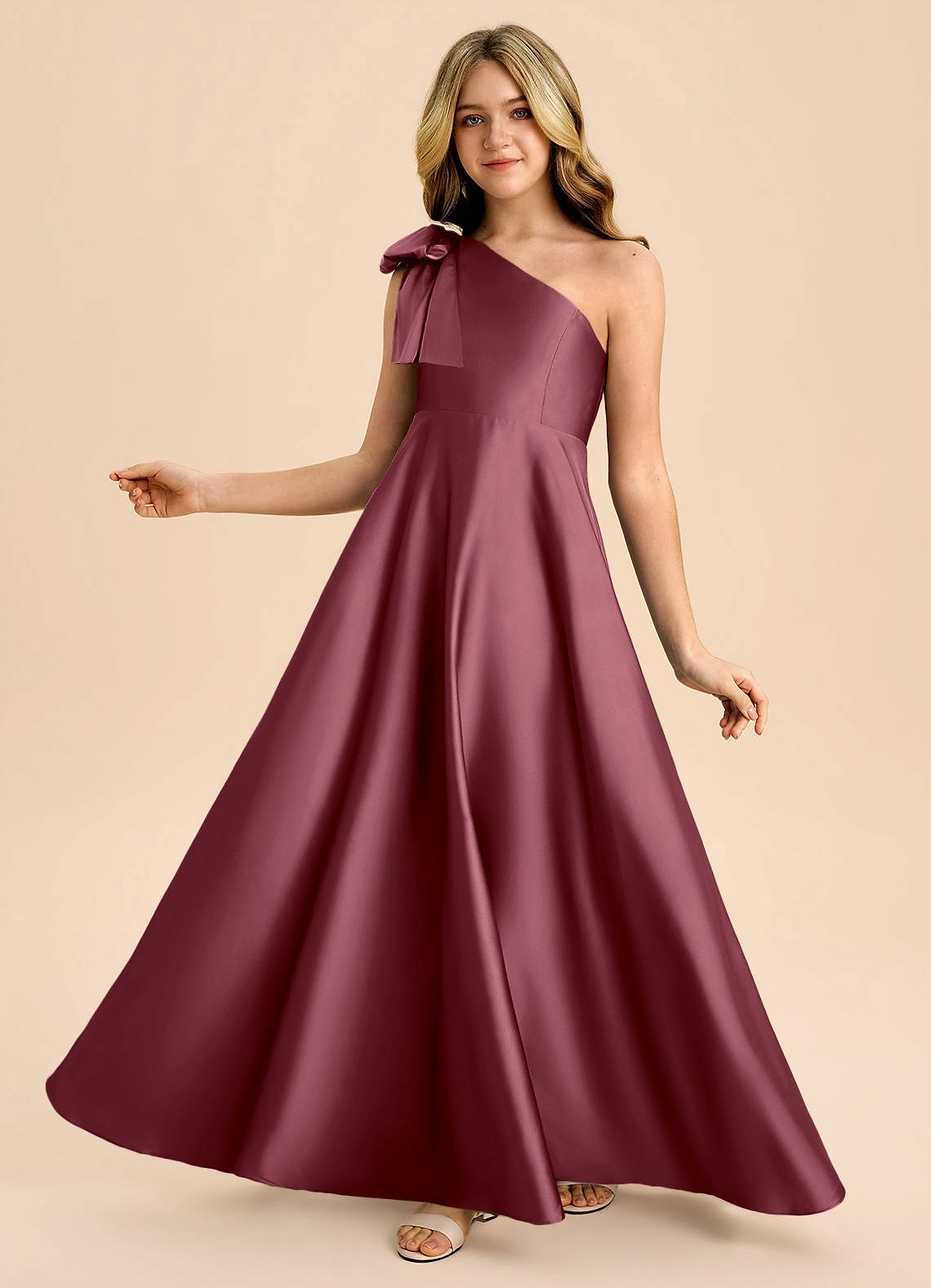 Abito A-Line in Raso Elasticizzato Fiocco Rosa Del Deserto