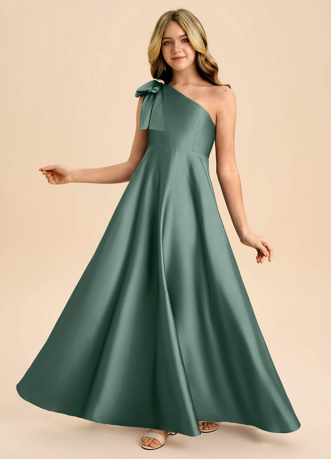 Abito A-Line in Raso Elasticizzato Fiocco Eucalipto