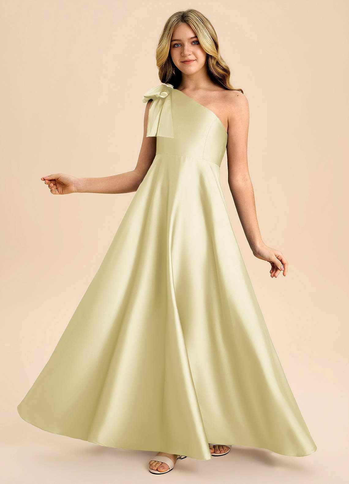 Abito A-Line in Raso Elasticizzato Fiocco Sorbetto Al Limone