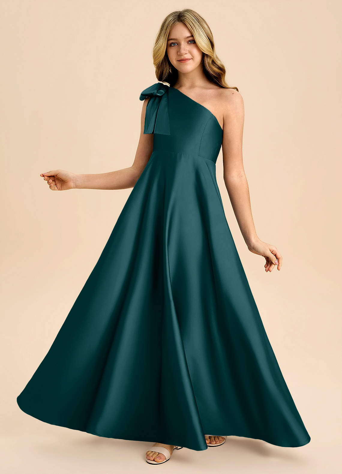 Abito A-Line in Raso Elasticizzato Fiocco Pino