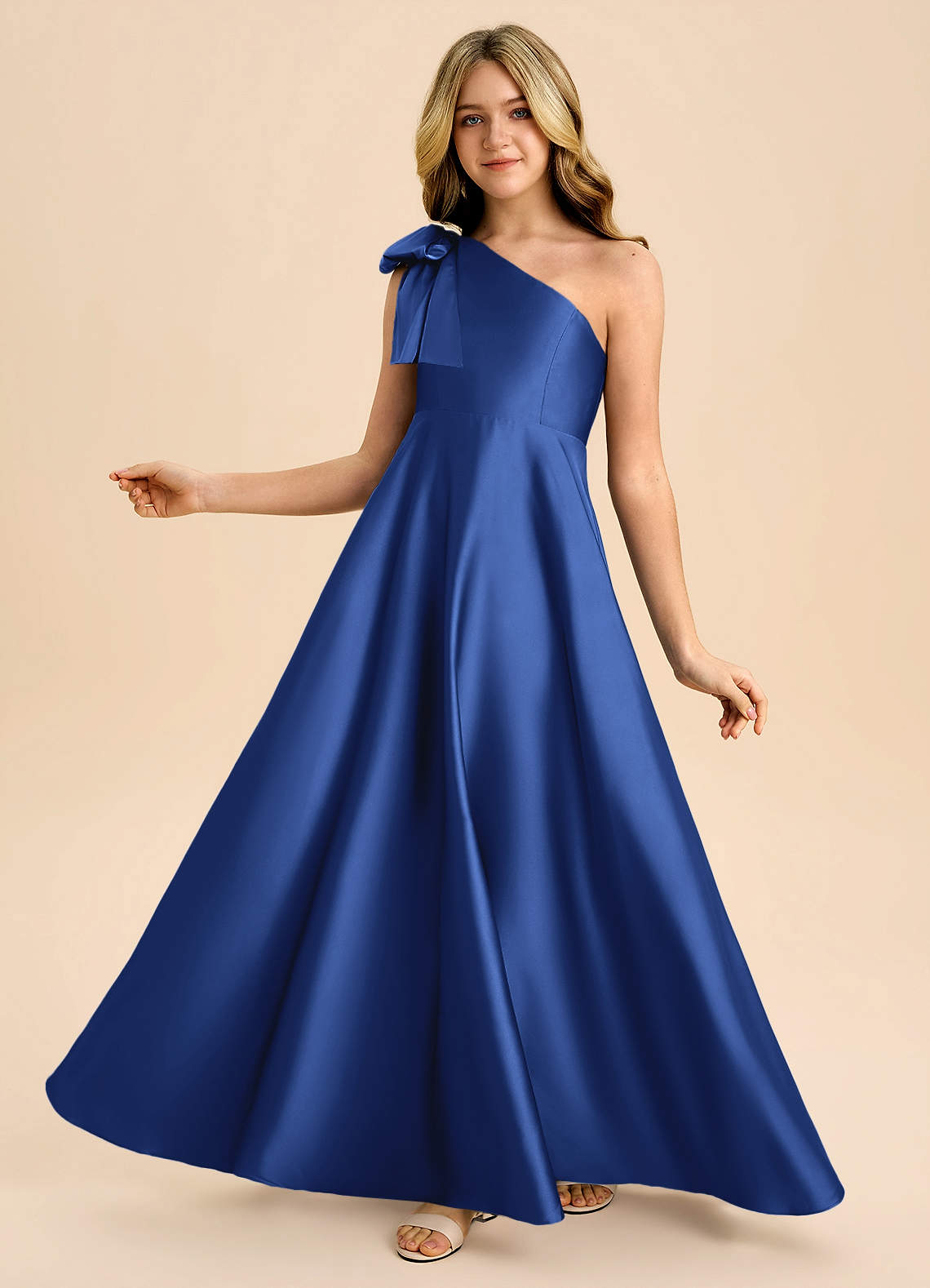Abito A-Line in Raso Elasticizzato Fiocco Blu Reale