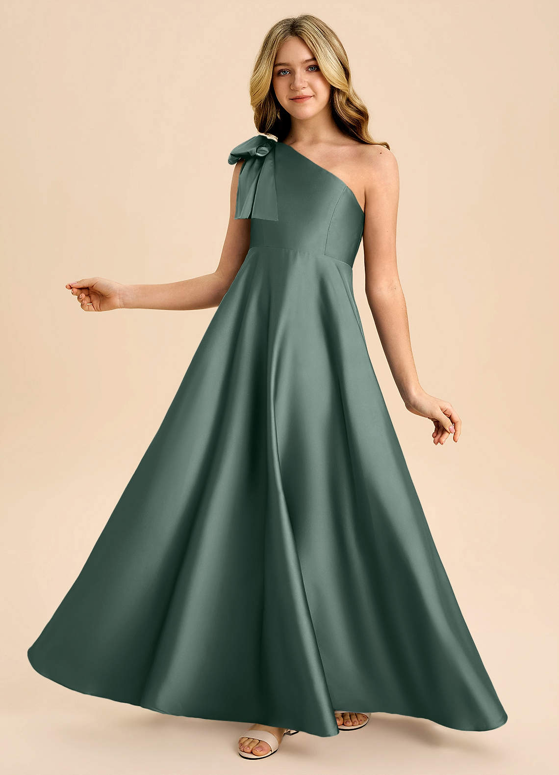 Abito A-Line in Raso Elasticizzato Fiocco Muschio Marino