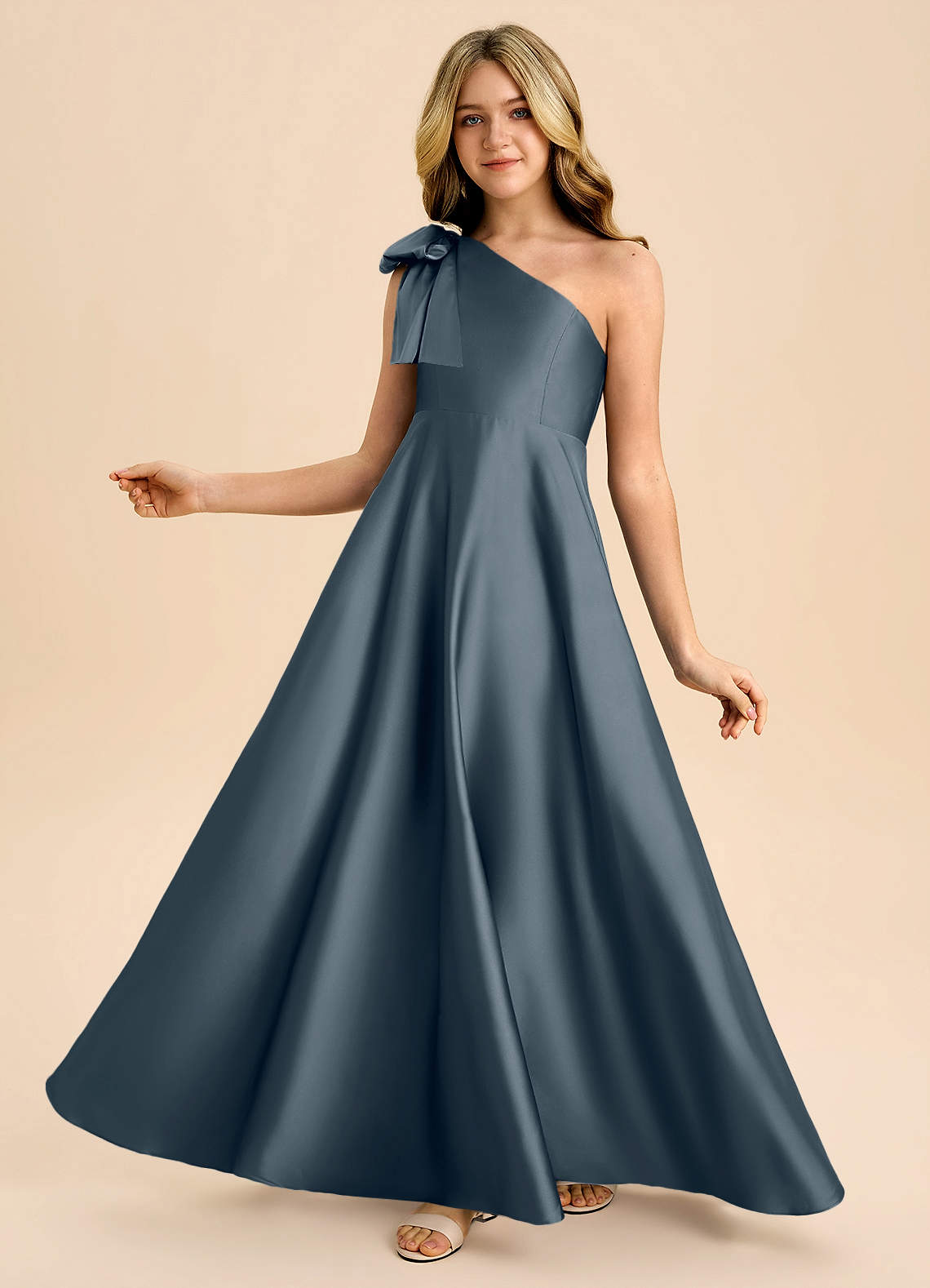 Abito A-Line in Raso Elasticizzato Fiocco Crepuscolo