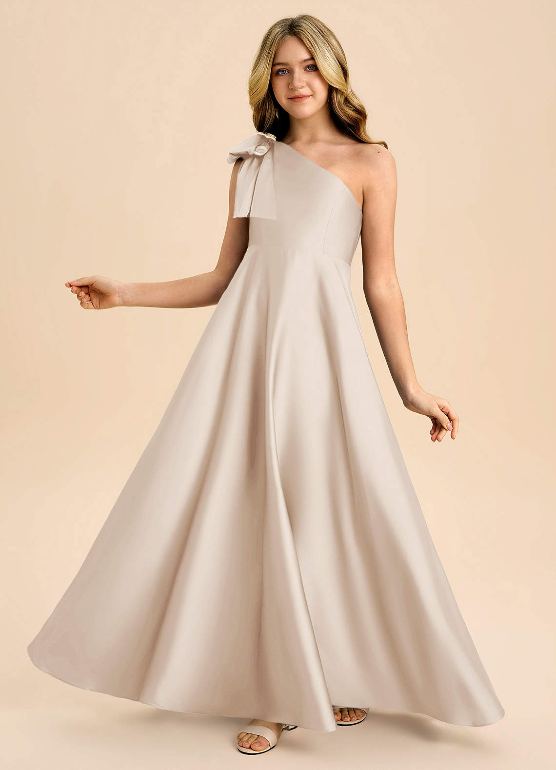 Abito A-Line in Raso Elasticizzato Fiocco Alabastro Bianco