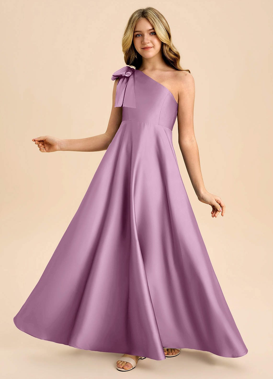 Abito A-Line in Raso Elasticizzato Fiocco Glicine