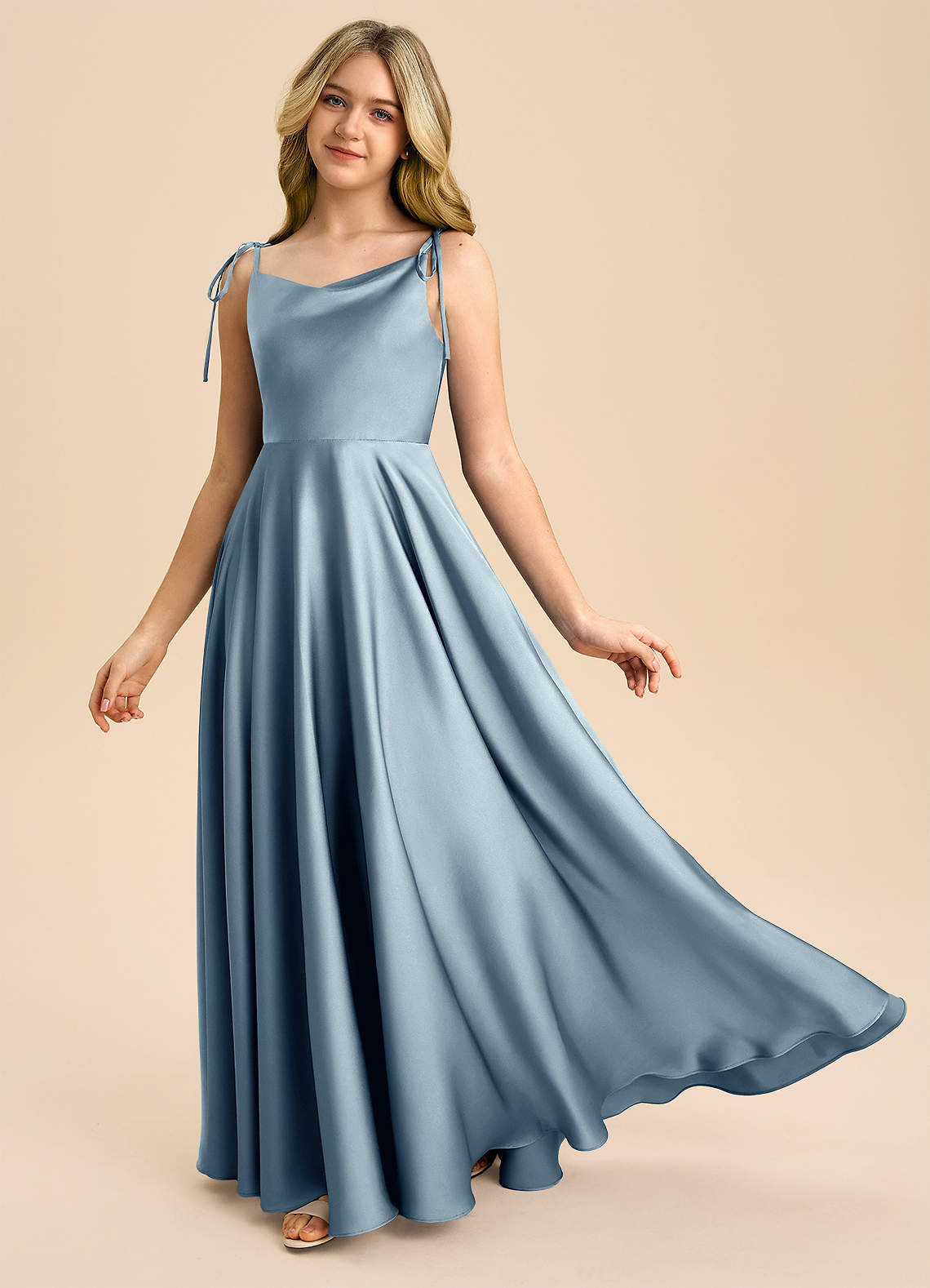 Abito A-Line in Raso Elasticizzato Fiocco Blu Polveroso